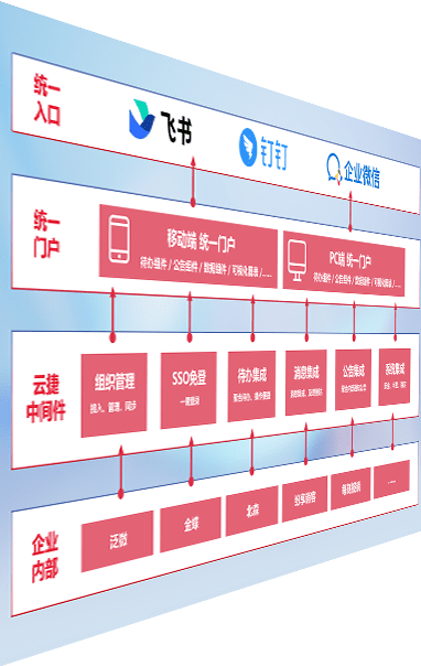 对协作平台提供支持服务,,,支持企业应用与协作平台对接,,,包含组织同步、、、消息集成、、、、待办集成等。。支持目前主流的协作平台:钉钉、、、、企微和飞书。。。。